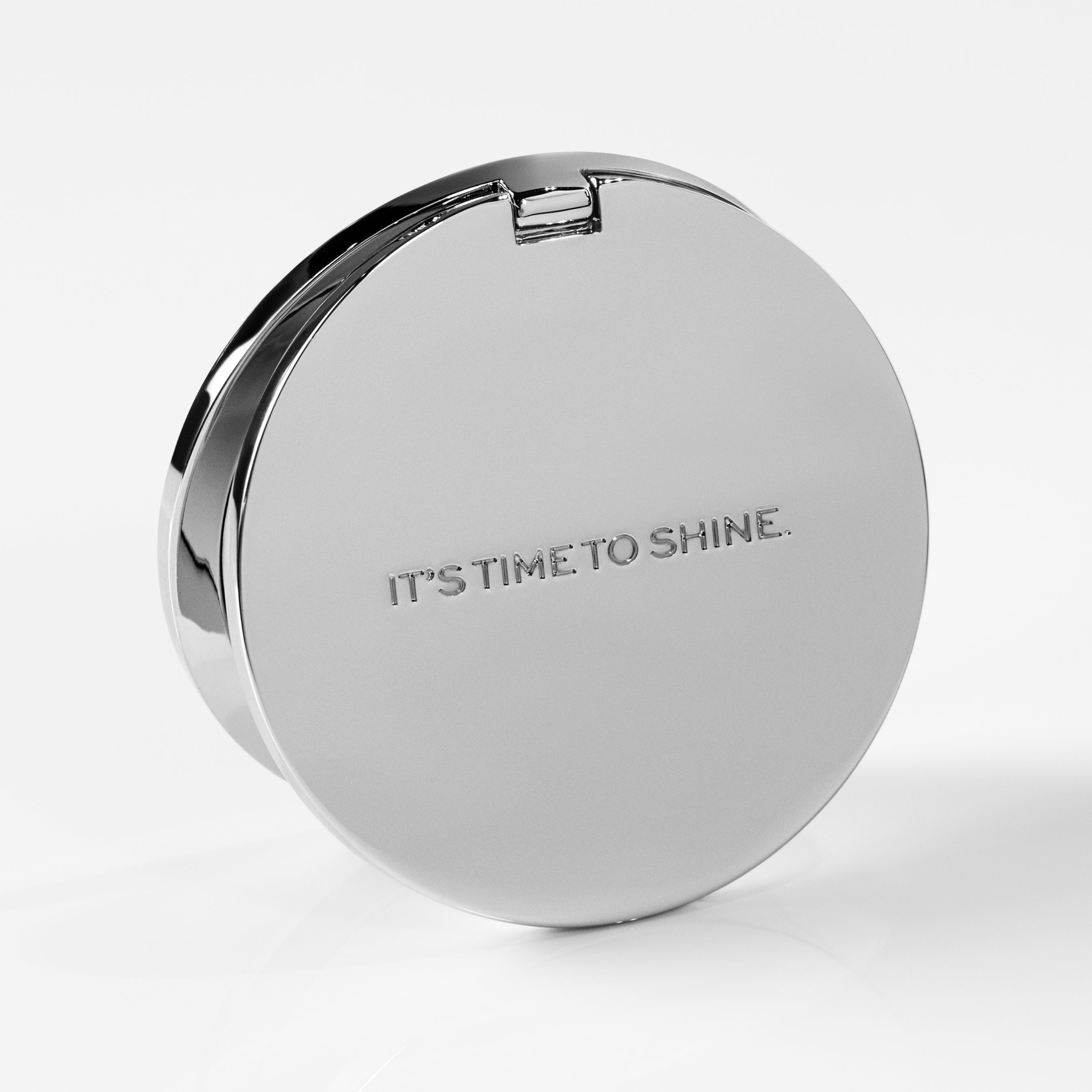 Perfect for on-the-go touch-ups. This compact mirror is crafted from heavy, high-grade zinc alloy, with debossed detailing on both sides and 1X and 2X magnification. To care for your mirror, clean it with mild soap and warm water to remove dirt, dust, and oils from the surface. Polish with a soft cloth. Comes with a branded